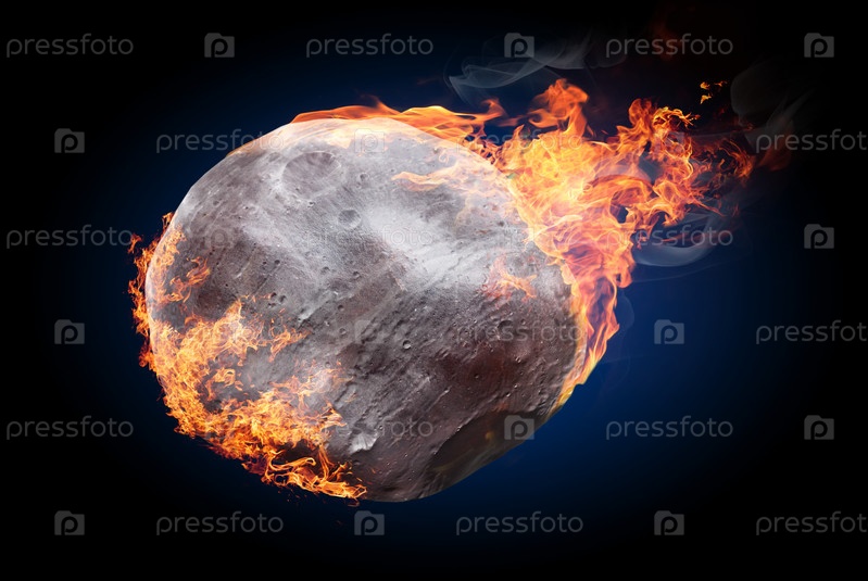 Падающий астероид горит в атмосфере, изолированный на черном фоне