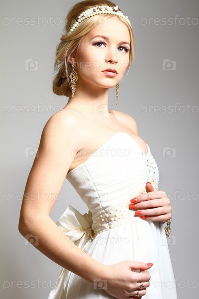 Портрет красивой молодой женщины-блондинки в греческом стиле, изолировано на сером фоне