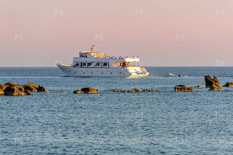 Белая круизная яхта в море