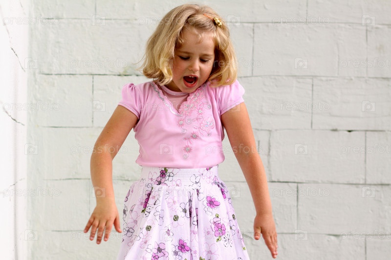 Маленькая девочка в розовом на фоне белой стены