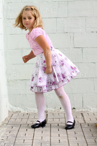 Маленькая девочка в розовом на фоне белой стены