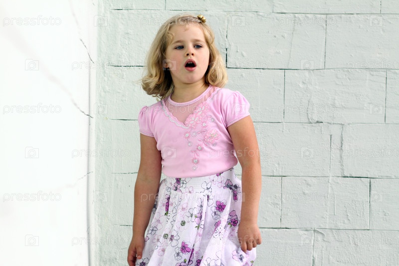 Маленькая девочка в розовом на фоне белой стены