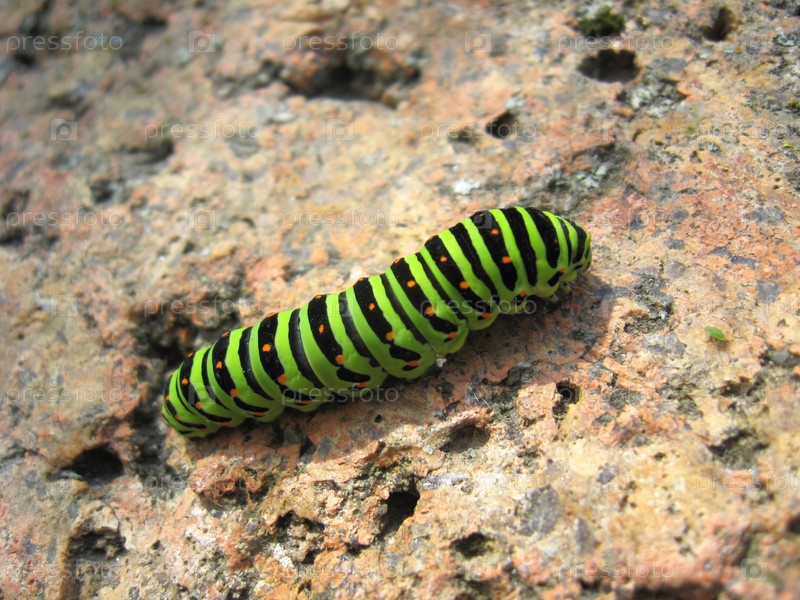 Гусеница бабочки махаон на камне