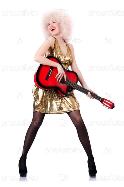 Молодая певица со стрижкой афро и гитарой