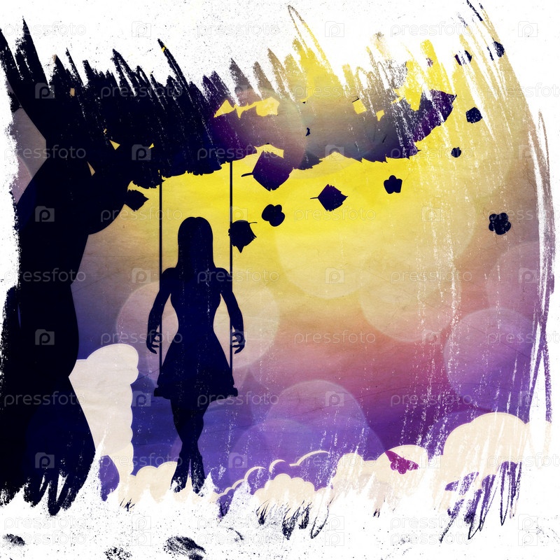 Силуэт девушки на качели в ночное время