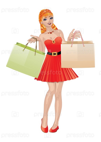 Девушка с рыжими волосами держит покупки