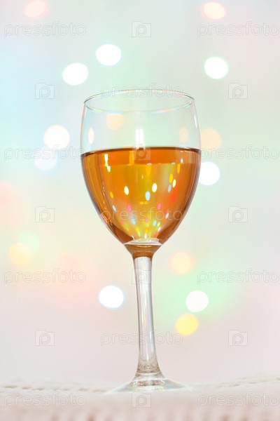 Бокал белого вина с огнями на заднем плане