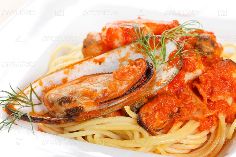 Макароны с мидиями