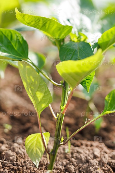 Зеленый перец растет в саду
