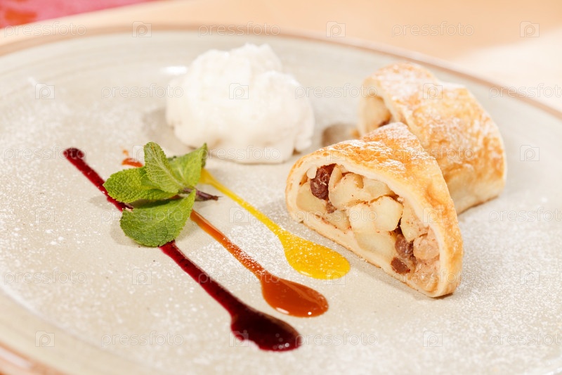 Яблочный штрудель с ванильным мороженым