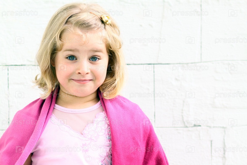 Маленькая девочка в розовом на фоне белой стены
