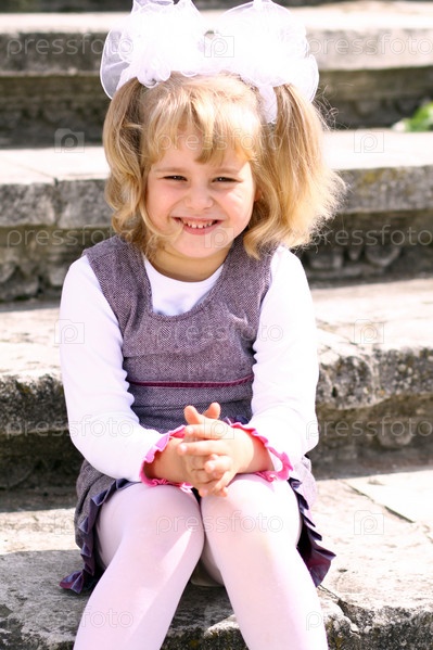 Маленькая девочка сидит на лестнице