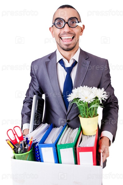 Уволенный человек с коробкой личных вещей