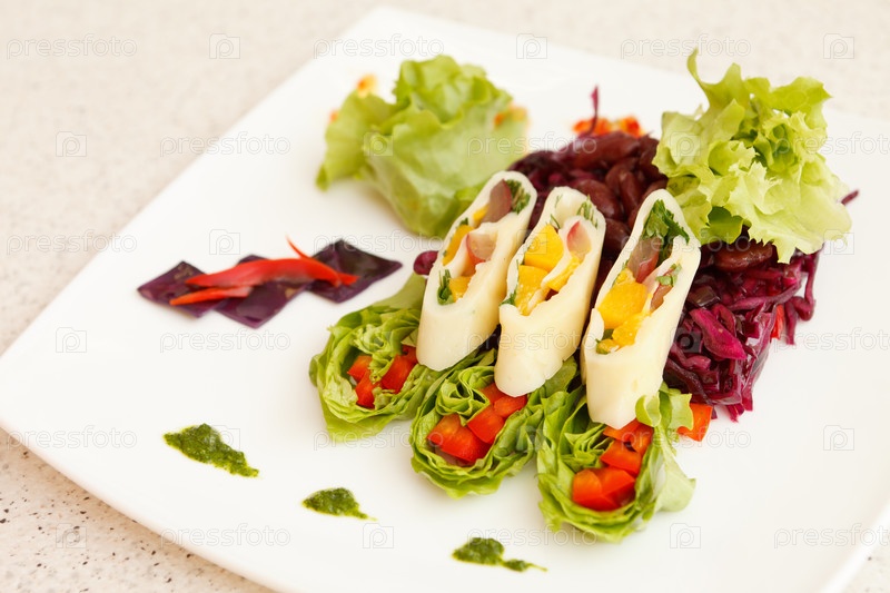 Летний салат с кальмарами
