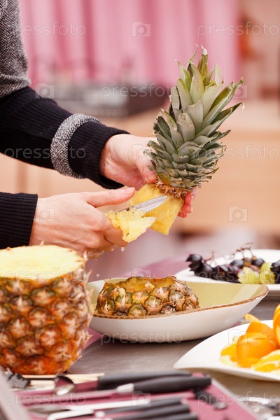 Шеф-повар готовит птицу из фруктов