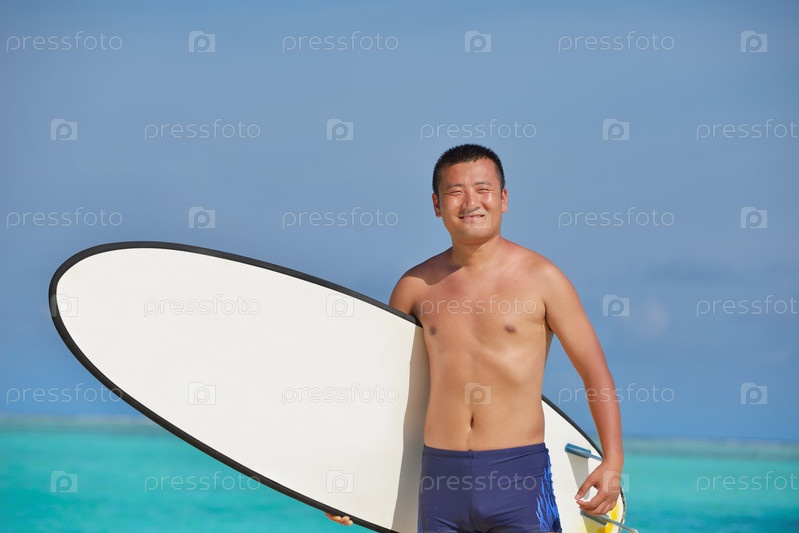 Счастливый молодой человек наслаждается летом на пляже