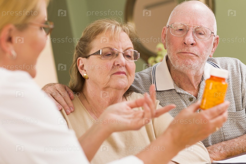 Врач или медсестра объясняет рецепт пожилым пациентам