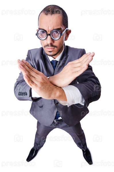 Смешной бизнесмен в очках, изолированный на белом фоне