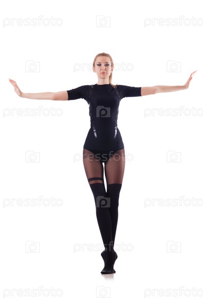 Женщина танцует, изолированная на белом фоне