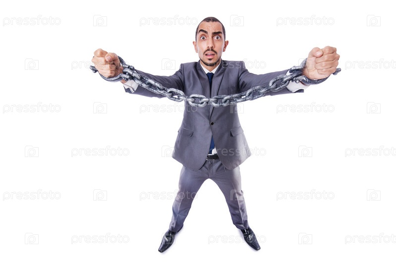 Бизнесмен в наручниках на белом фоне