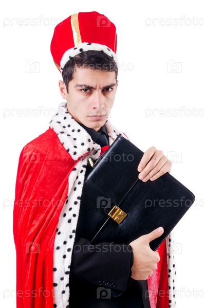Бизнесмен изображает короля, изолированный на белом фоне