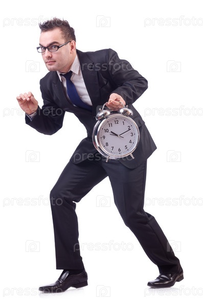 Бизнесмен с часами, изолированный на белом фоне