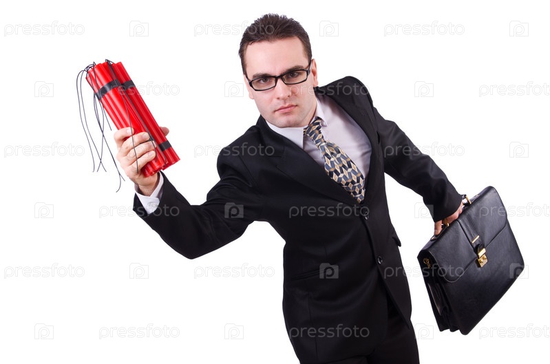 Бизнесмен с динамитом, изолированный на белом фоне