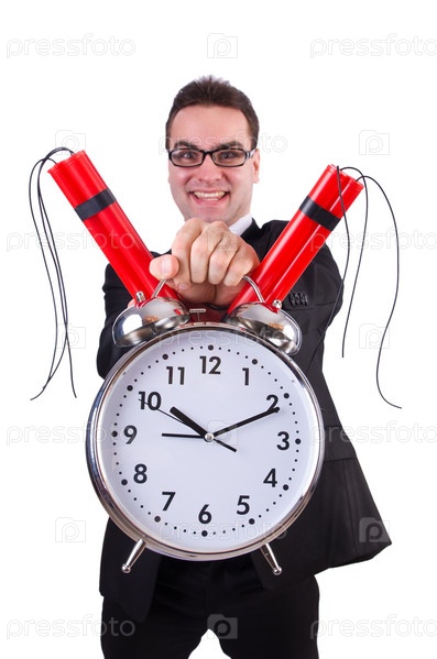 Бизнесмен с динамитом, изолированный на белом фоне