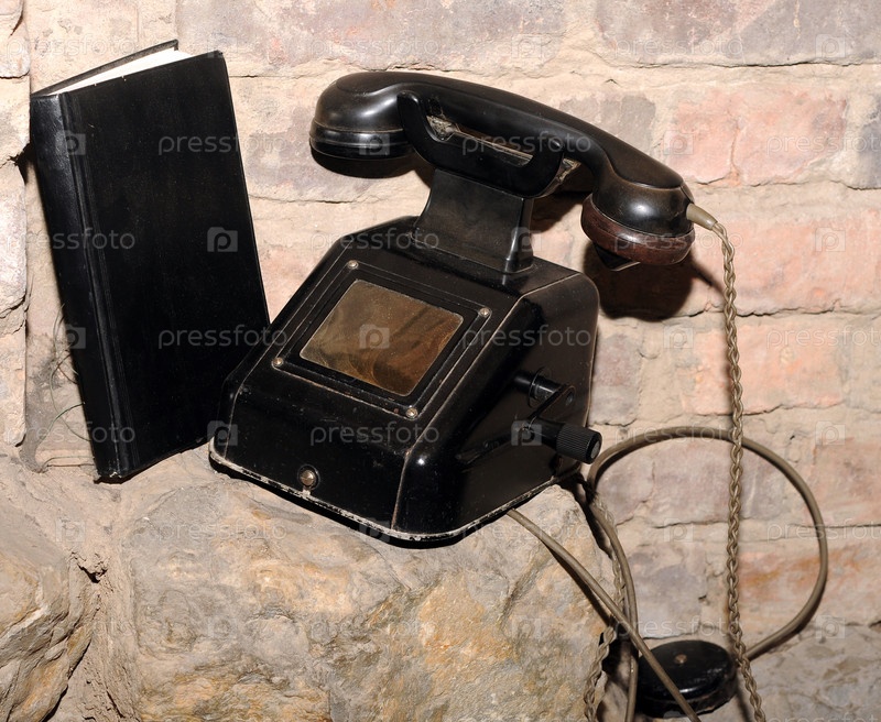 Старинный черный телефон и записная книжка