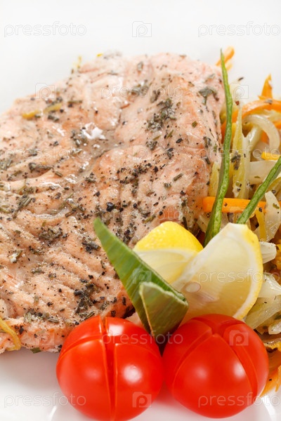 Стейк из лосося с овощами