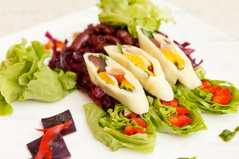 Летний салат с кальмарами