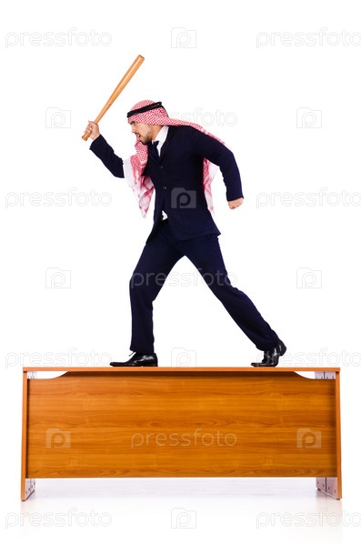 Арабский бизнесмен с бейсбольной битой