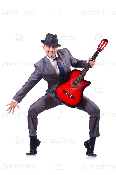 Гитарист, изолированный на белом