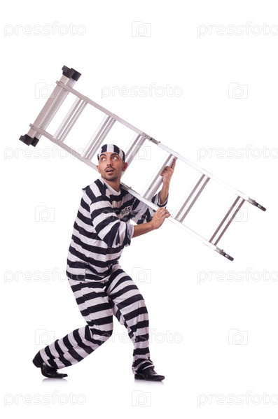 Осужденный преступник в полосатой форме