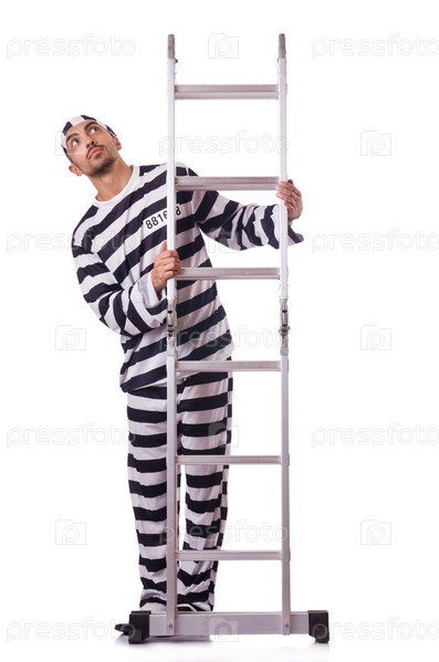 Осужденный преступник в полосатой форме