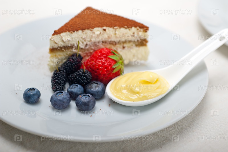 Десерт тирамису с ягодами и сливками