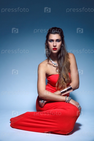 Красивая молодая женщина в красном платье