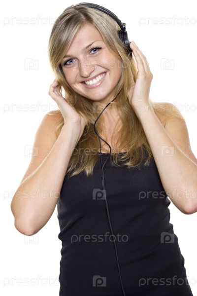 Веселая девушка в наушниках