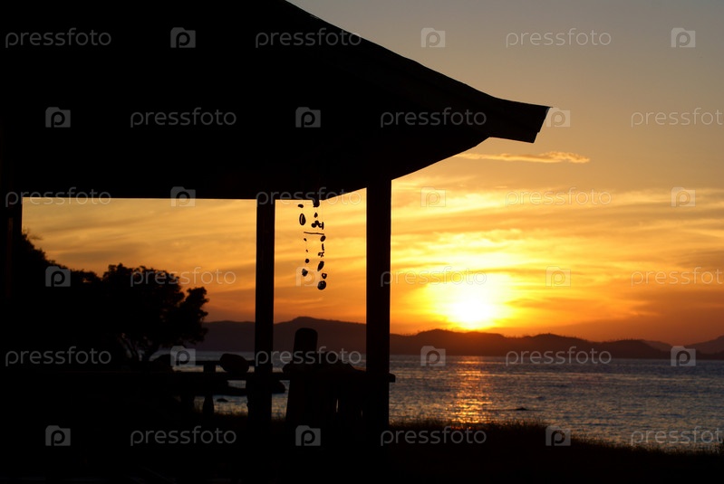 Вид на закат из беседки на берегу