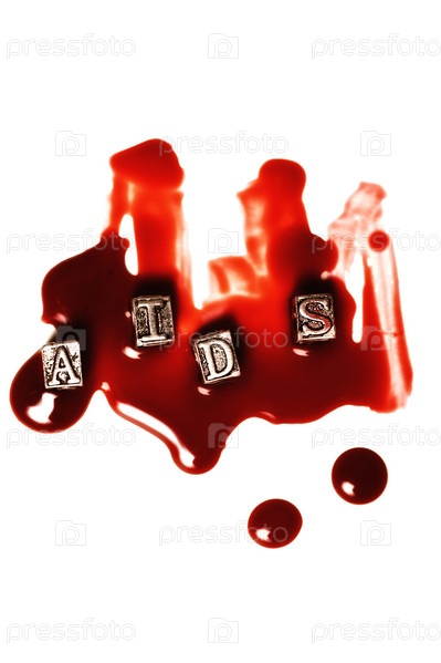 Слово СПИД в каплях крови