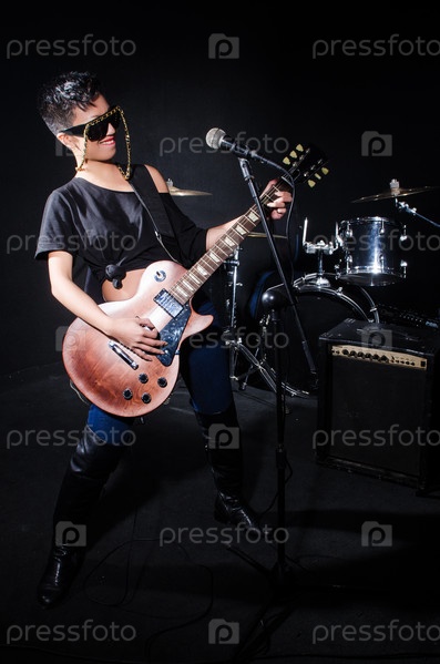 Женщина-гитарист во время концерта