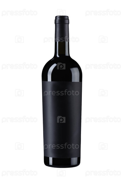 Черная бутылка вина на белом фоне
