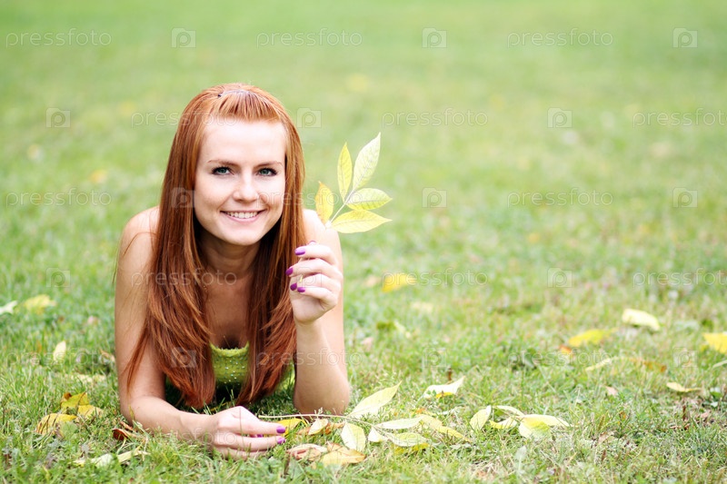 Девушка на природе с осенними листьями