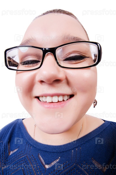 Смешная женщина на белом фоне