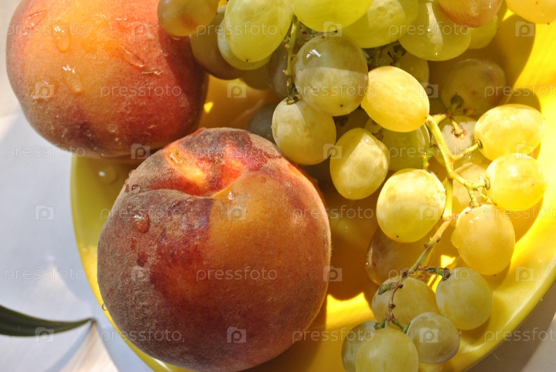 Персики и гроздь винограда
