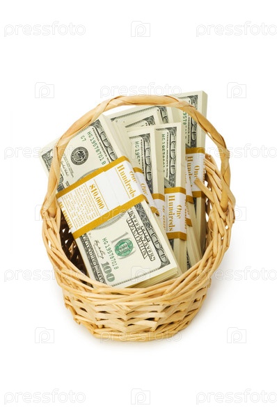 Пачки денег в корзинке