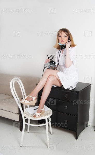 Женщина-врач говорит по телефону