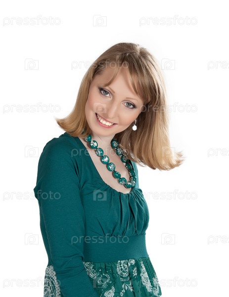 Портрет красивой блондинки в зеленом платье