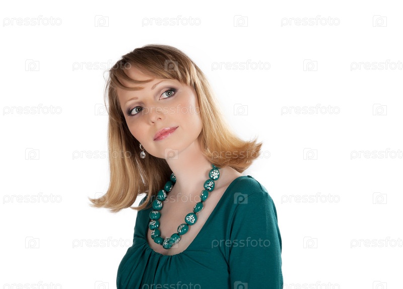 Портрет красивой блондинки в зеленом платье