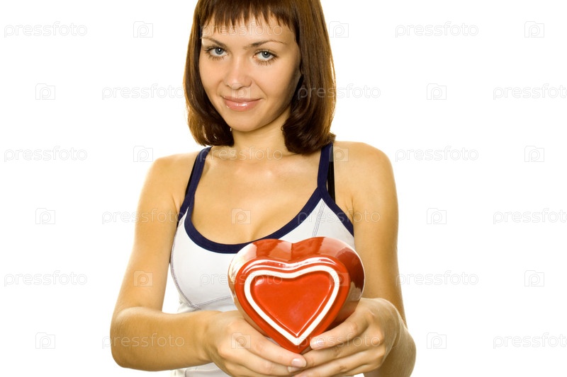 Портрет молодой девушки с фарфоровым сердечком в руках